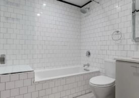 Exposed brick in some residences and hardwood floors that highlight the building’s historic roots