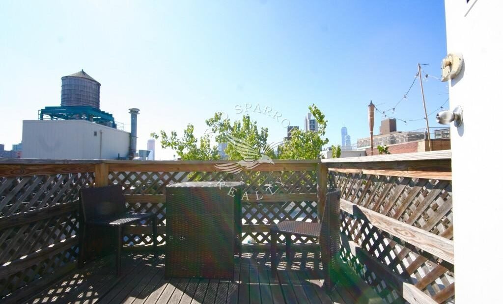 Duplex flex two bedroom, features two spacious bedrooms with ample closet space and storage space. This unit is also characterized by its tile bath with two windows that pull in lots of natural light, the separate kitchen provides access to the private roof deck with its intricate spiral staircases and amazing open views of the East Village. The finishing touch is its sea haze colored walls and hardwood flooring found throughout the apartment. #63758