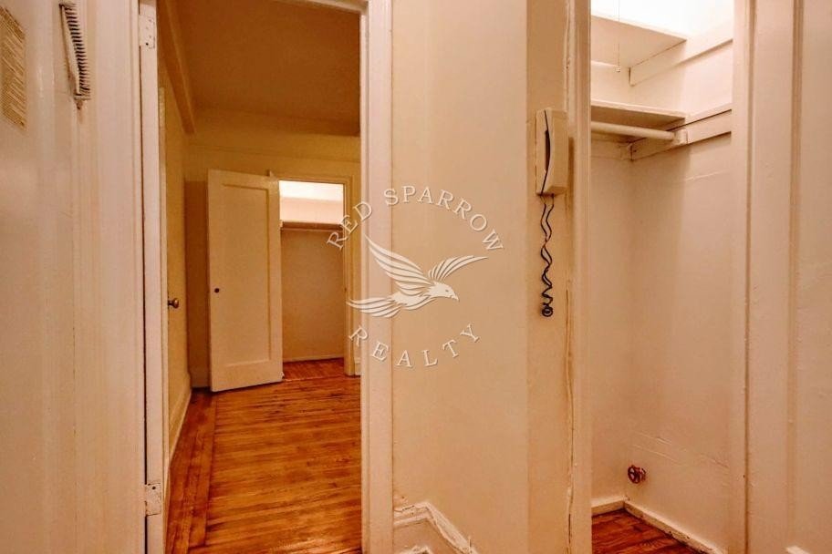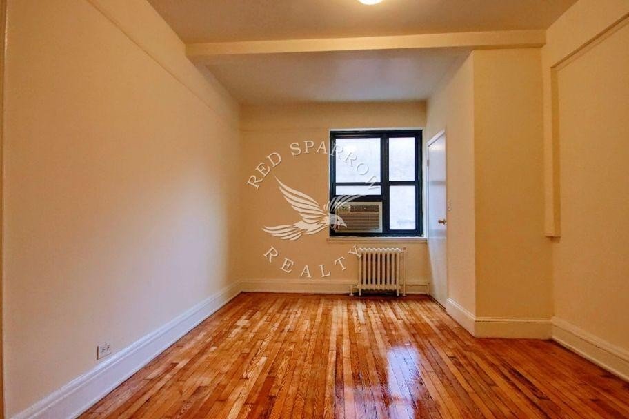 One bedroom with a living room (could be two-bedrooms) with hardwood flooring, a separate kitchen, bathroom, and pre-installed air conditioner. Located in a 24-hour doorman building with elevator and laundry facility. #63759