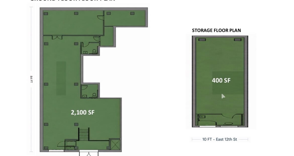 SIZE: 2,100 SF Ground Floor + 400 SF Separate Storage