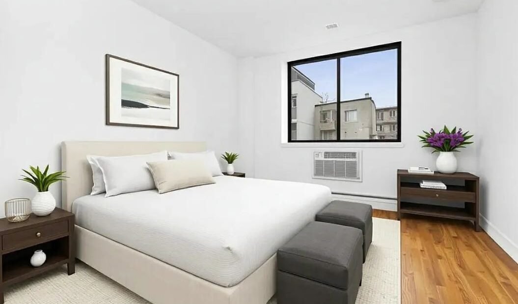 This luxury 2 bedroom features stainless steel appliances, hardwood floors, plenty of closet space, high ceilings, large windows, and video intercom.