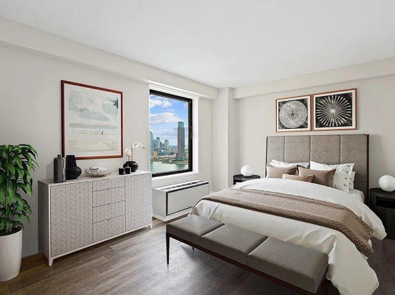 GET ONE MONTH FREE for MOVE IN BY 12/31! A fully renovated, spacious 2 Bedroom, 2 Bath with lots of closet space. The kitchen features white cabinetry with white Silestone countertops, porcelain floor tile, and white tile backsplash, stainless steel sink, fridge, dishwasher, gas range, and microwave and a sleek LED fixture with black aluminum framing. The bathrooms feature a 24 two-drawer vanity with white marble top, Kohler Corbelle white fixtures, white subway tile, chrome faucets, aluminum-framed LED overhead lighting and light gray porcelain floor tiles. Select master baths have a large walk-in shower with a frosted glass sliding door. The master bedroom will fit a king-size bed and plenty of furniture. Beautiful, new light grey flooring is featured throughout the entire home. Waterside is a waterfront community which sits on a two-acre landscaped plaza with spectacular river and city views. Year-round activities take place on the plaza and in our newly opened Lewis Davis Pavilion, where residents can relax, study or work with complimentary Wi-Fi. Other amenities include a children’s playground with splash fountains and a brand new, three-level health club with a 7-lane indoor heated pool, two training floors, cardio center, live class studio, locker rooms with saunas and an outdoor sundeck. And finally, our on-site retail spaces; a Gristedes grocery store, a dry cleaner, and nail salon and spa, **3D-Tour represents the floorplan and finishes. Views will vary.