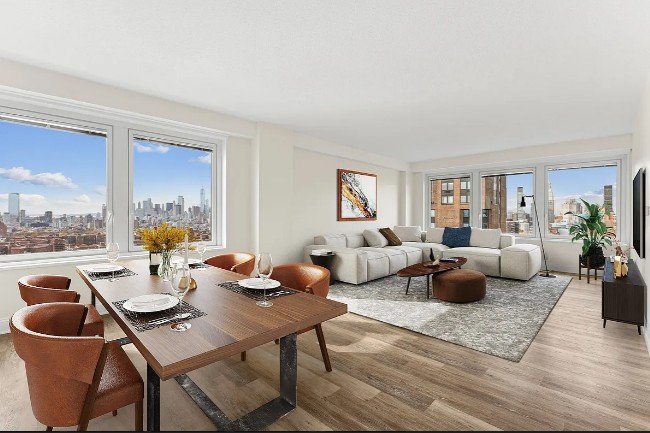 $3000 RENT CREDIT for MOVE IN BY12/31! Offer applies to NEW RESIDENTS ONLY! Very large, fully renovated 3 Bedroom, 2 Bath with lots of closet space. EASILY FLEXES TO 4 BR’s!! The kitchen features white cabinetry with white Silestone countertops, porcelain floor tile, and white tile backsplash, stainless steel sink, fridge, dishwasher, gas range, and microwave and a sleek LED fixture with black aluminum framing. The bathroom features a large walk-in shower with a black, aluminum-framed sliding door, a 24 two-drawer vanity with white marble top, Kohler Corbelle white fixtures, white subway tile, chrome faucets, aluminum-framed LED overhead lighting and light gray porcelain floor tiles. The large master bedroom will fit a king-size bed and plenty of furniture. Beautiful, new light grey flooring is featured throughout the entire apartment. Waterside is a waterfront community which sits on a two-acre landscaped plaza with spectacular river and city views. Year-round activities take place on the plaza and in our newly opened Lewis Davis Pavilion, where residents can relax, study or work with complimentary Wi-Fi. Other amenities include a childrens playground with splash fountains and a brand new, three-level health club with a 7-lane indoor heated pool, two training floors, cardio center, live class studio, locker rooms with saunas and an outdoor sundeck. And finally, our on-site retail spaces; a Gristedes grocery store, a dry cleaner, and nail salon and spa**3D-Tour represent the floorplan and finishes. Views will vary.