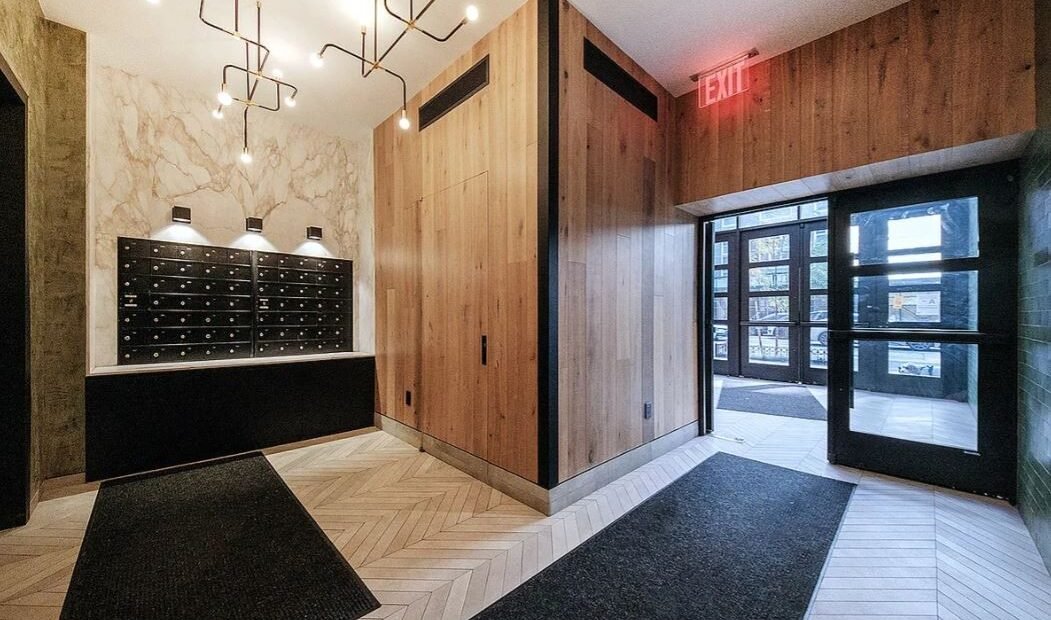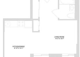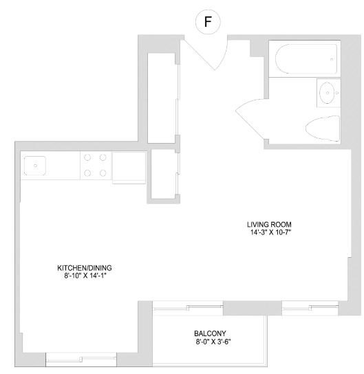 Studio unit facing north with private balcony. Residence 10F is a renovated bright alcove studio with separate sleeping area. Apartment features hardwood floors, 3 large closets and a new kitchen and bathroom with stainless steel appliances, custom cabinets, granite countertops, stone tiles and modern fixtures.