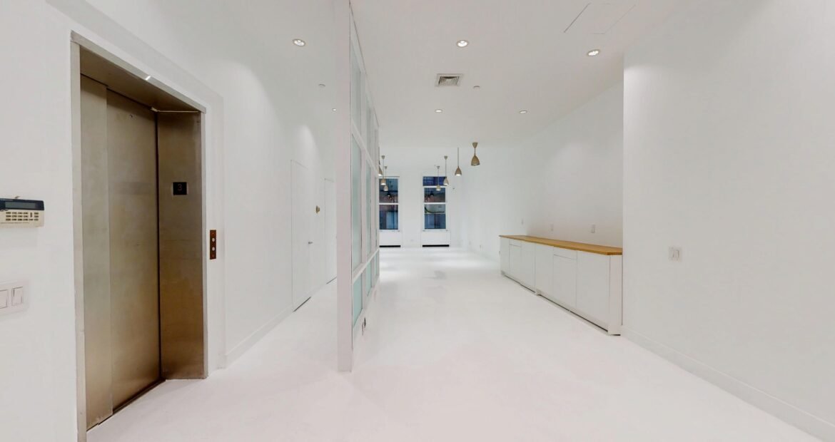 69 Mercer Street, Third Floor is a private, full-floor office offered directly by ownership in a SoHo elevator building between Spring and Broome Streets. The elevator delivers you straight into a bright, gallery-clean floor with a controlled, professional feel and minimal visual noise, making it immediately credible for client-facing use.