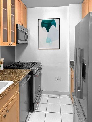Spacious one-bedroom with galley kitchen off the large living room and leaves a large open space, large enough to flex to a two-bedroom. The kitchen has custom solid wood cabinetry, stainless steel appliances, and granite countertops. Bathroom features ceramic tile and tri-view medicine cabinet. In addition, this home comes with abundant closet space. A part-time doorman building, Habitat has a Resident Manager, a landscaped and furnished roof deck, laundry in the building, and a complimentary fitness center.