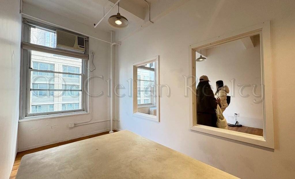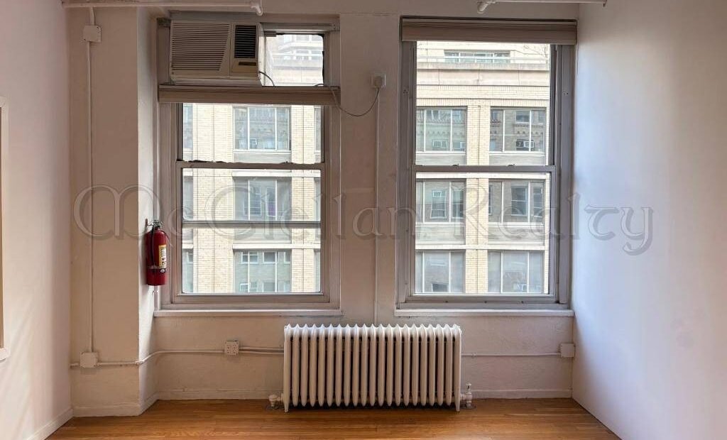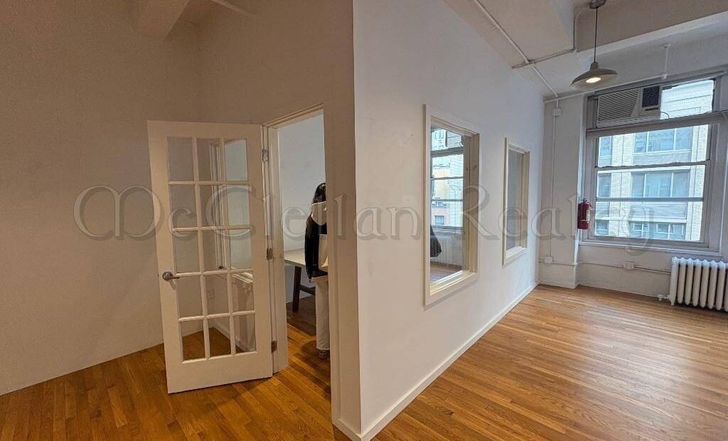 Step into a premium commercial space in the heart of Midtown Manhattan, offering 1,100 sq. ft. of versatile office potential. This sixth-floor unit features soaring ceilings and elegant hardwood floors, creating an inspiring environment for your business. The private office room, with its own window and transom windows, provides a tranquil retreat for focused work or executive meetings. π