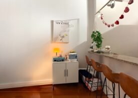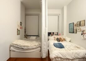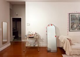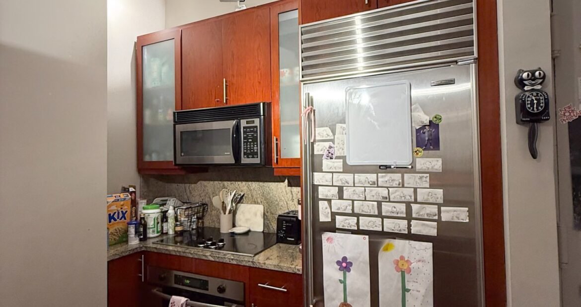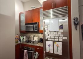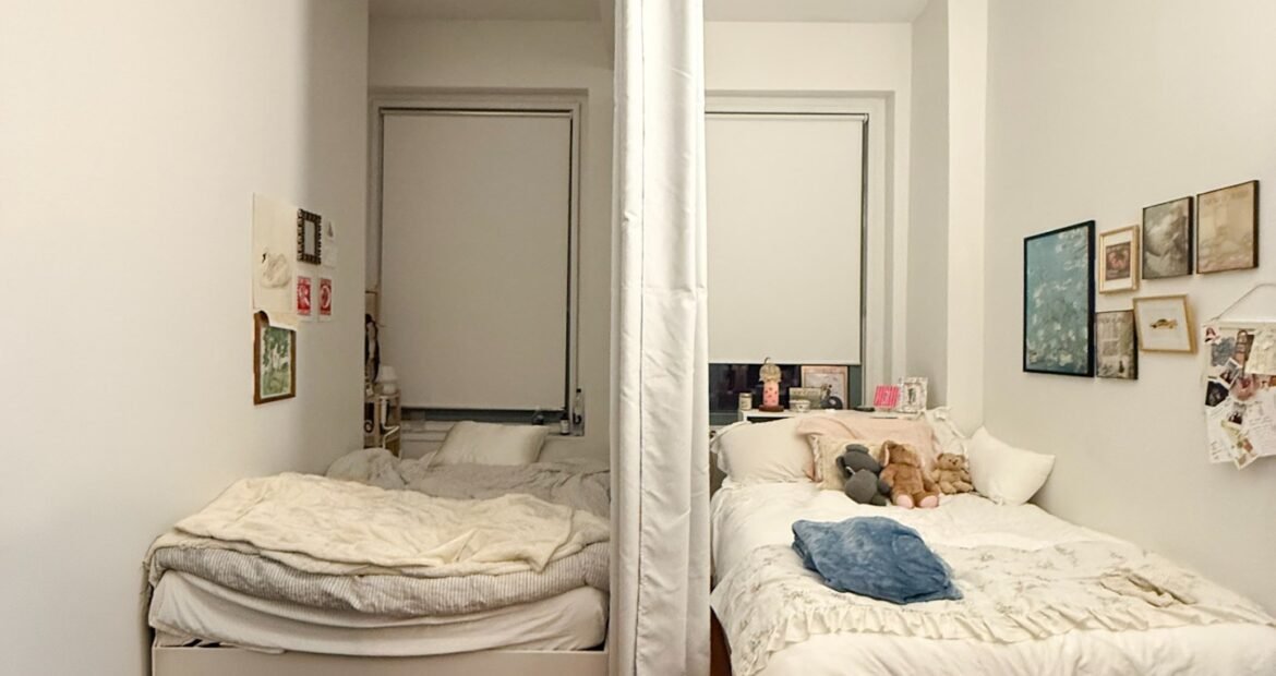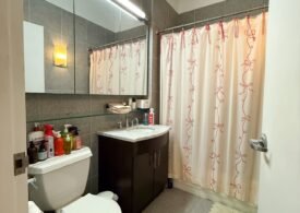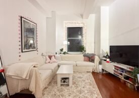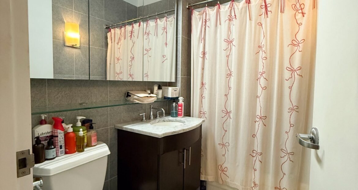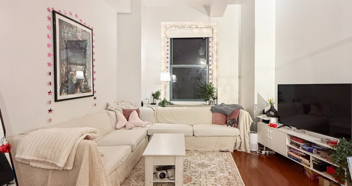 The home features soaring 10’8″ ceilings, oversized windows that flood the space with natural light, and top-of-the-line finishes throughout. The open living area is perfect for relaxing or entertaining, with a 42-inch flat-screen TV, stylish furnishings, and a fully equipped kitchen complete with dishwasher, pots, pans, and more. Each room has its own HVAC unit for personalized comfort, and the building provides laundry facilities on every floor, a 24-hour doorman, and elevator access for convenience. 🛋️