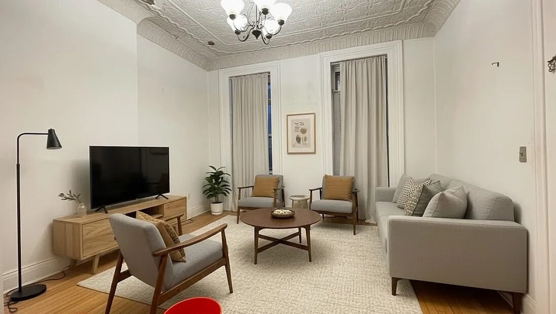 This spacious 2BR/1BA features high ceilings, tall windows, hardwood floors, and exposed brick walls. Enjoy a rustic semi-open kitchen, a sunny living room, and classic tin ceilings. With a little TLC, this unique home can truly shine…The space is currently under renovation. Work is expected to be completed in 2–3 weeks, once the owner has secured serious prospective tenants.”