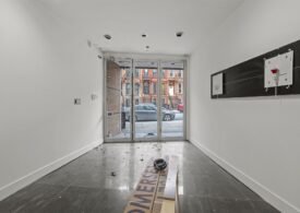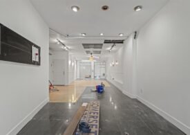 The space features a deep, open layout with high ceilings, recessed lighting, and a clean white-box condition, allowing for flexible customization. The configuration supports a variety of uses including retail, gallery, studio, office, or service-based concepts.