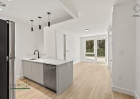 Both king-size bedrooms feature generous closet space, while the primary suite boasts a private en-suite bathroom for added privacy. The designer kitchen is equipped with an island counter and dishwasher, making meal prep and hosting effortless. Modern finishes and oversized windows fill the space with natural light, creating a welcoming atmosphere for professionals, roommates, or anyone seeking comfort and style.