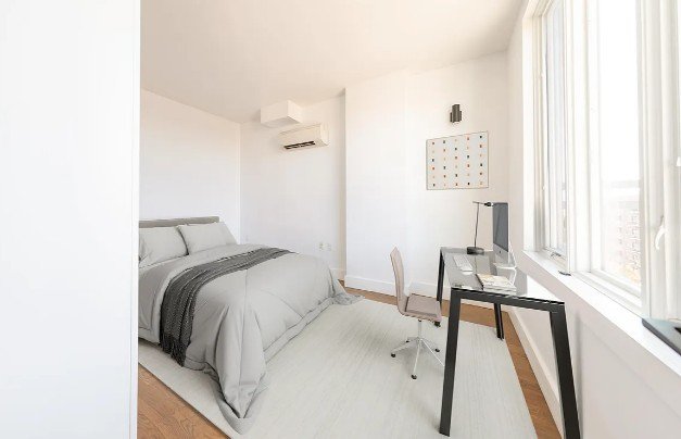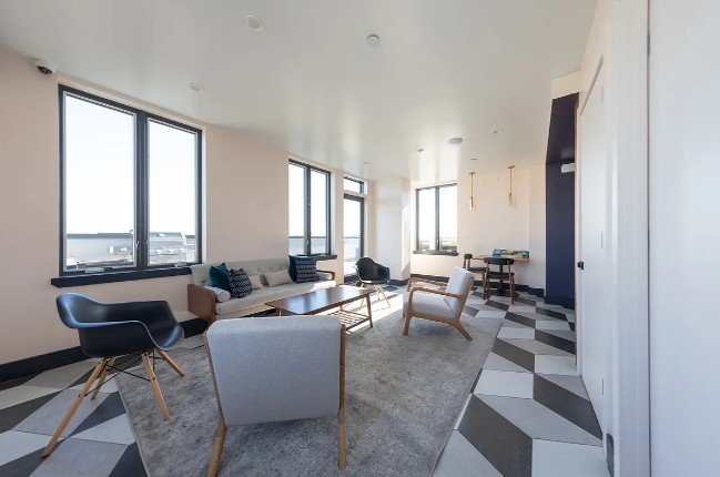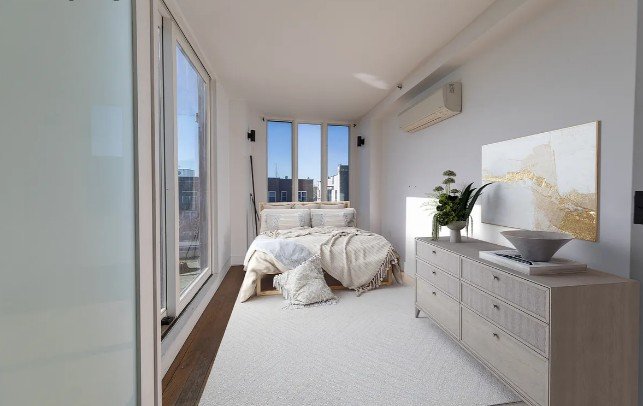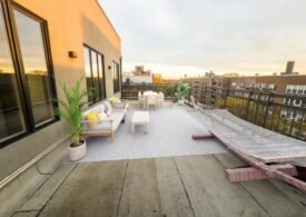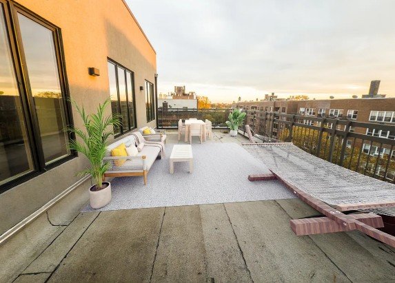Rent Stabilized 2BR with private outdoor space in an elevator building with laundry room, roof deck, gym