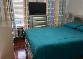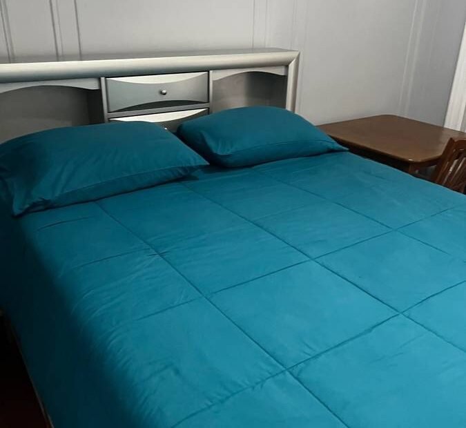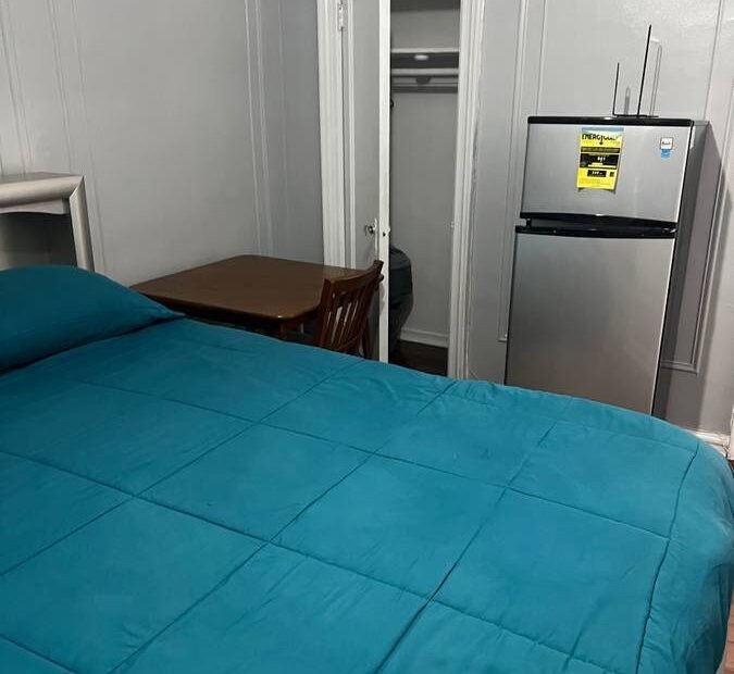 – Very spacious furnished room with queen-size bed, large closet, refrigerator, and big-screen TV