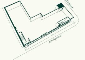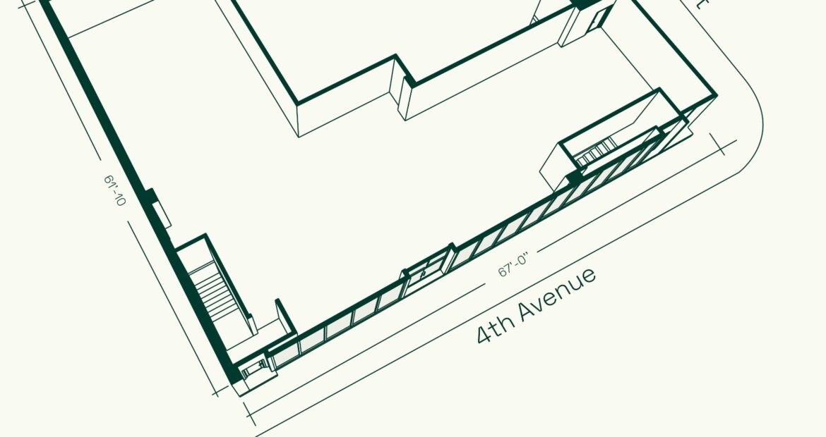 Completed in 2019, the property features 50 feet of floor-to-ceiling glass frontage along 4th Avenue and soaring 14-foot ceiling heights, offering exceptional visibility and a commanding street presence.