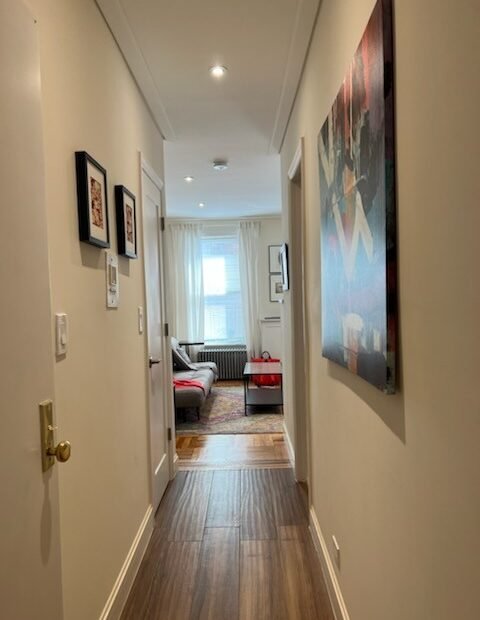 The unit has tons of natural light, large windows, brick wall exposure, recessed lights, lots of closet space. The kitchen and bathrooms have been tastefully renovated, showcasing modern fixtures and finishes. The kitchen is fully equipped with high-quality appliances.