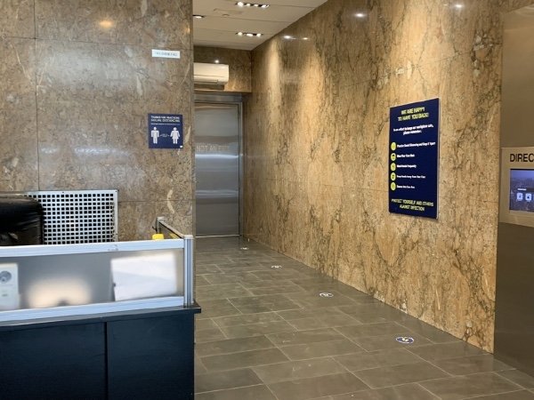 This newly renovated office boasts hardwood floors, elegant marble corridors, modern track lighting, and stylish glass doors, creating an impressive and productive environment.