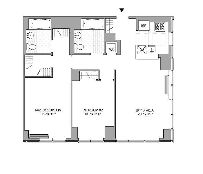 Fantastic Corner 2 Bed, 2 Bath Apartment Featuring a Windowed Open Kitchen, Spacious Living/Dining Area, King-Size Bedrooms, Primary Bed with Walk-In Closet and En-Suite Bath, In-Home Washer/Dryer, and Floor-to-Ceiling Windows with Bright Southeast Exposure and City Views.
