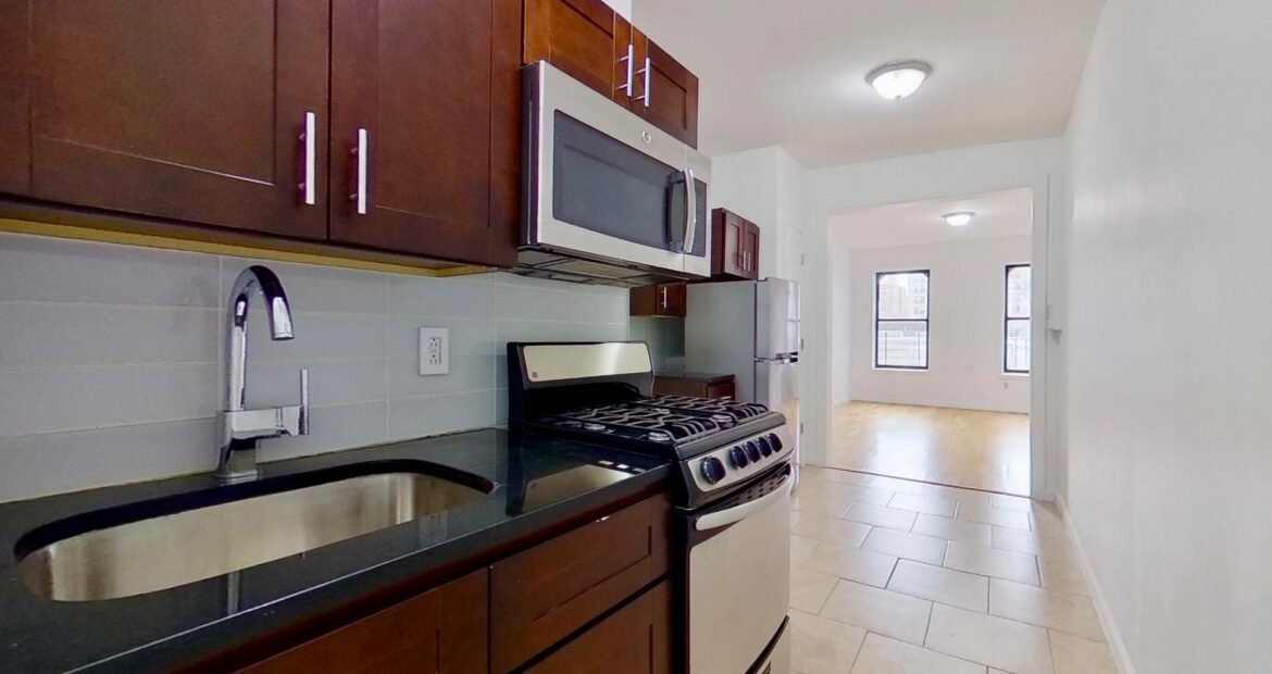 *The right sized studio . Come take a look! The living area is big enough for a Queen sized bed plus a nice sized love seat along with a coffee table. You can divide this lovely studio properly. There are plenty of closets in order to accommodate your clothing plus your kitchen necessities. 4 flights up facing South ( walk up ). Laundry facilities in building .
