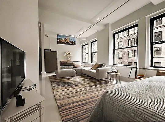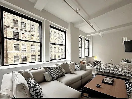 Experience the epitome of urban sophistication in this stunning, newly converted Soho-style loft located in the heart of Manhattan’s vibrant Garment District. This expansive 650 sq ft alcove studio boasts soaring high ceilings and oversized windows, flooding the space with natural light and creating an airy, inviting atmosphere. The industrial-chic design is complemented by a sleek marble bath, modern finishes, and premium air conditioning for year-round comfort. 🏙️