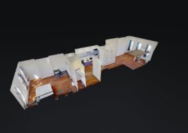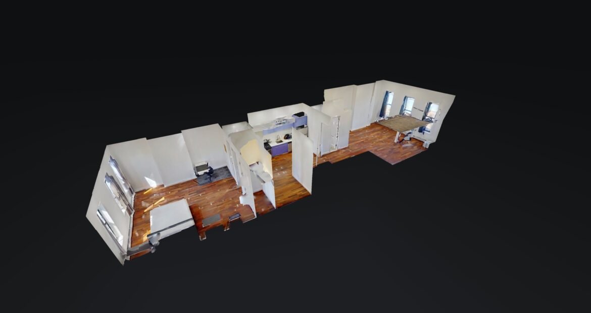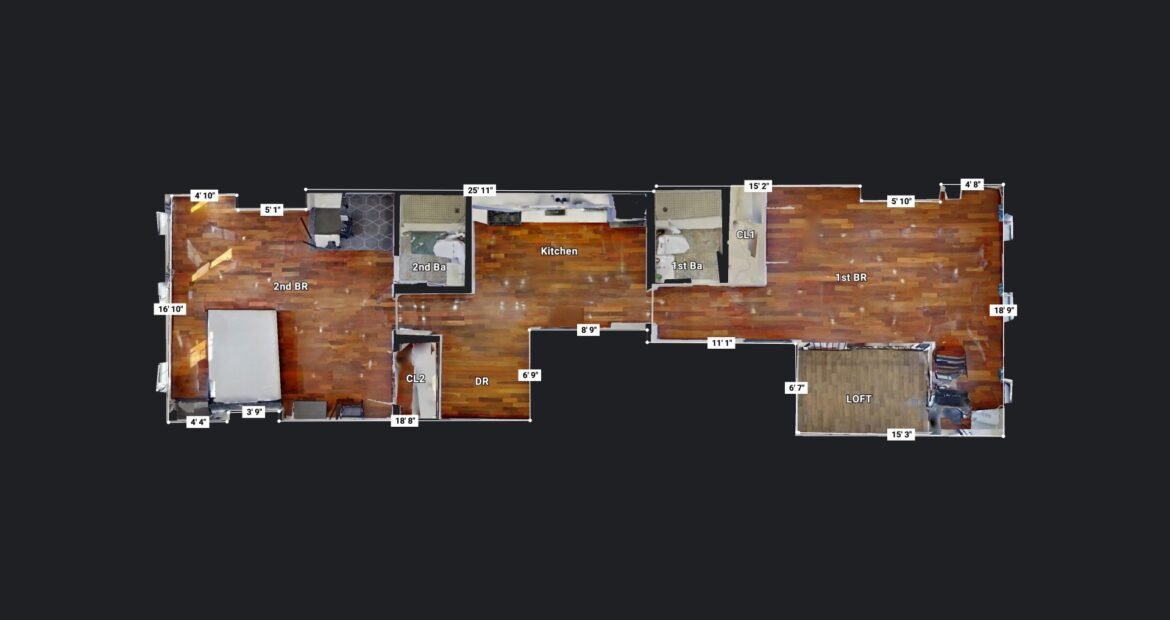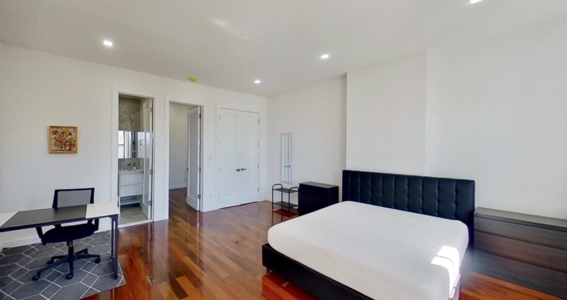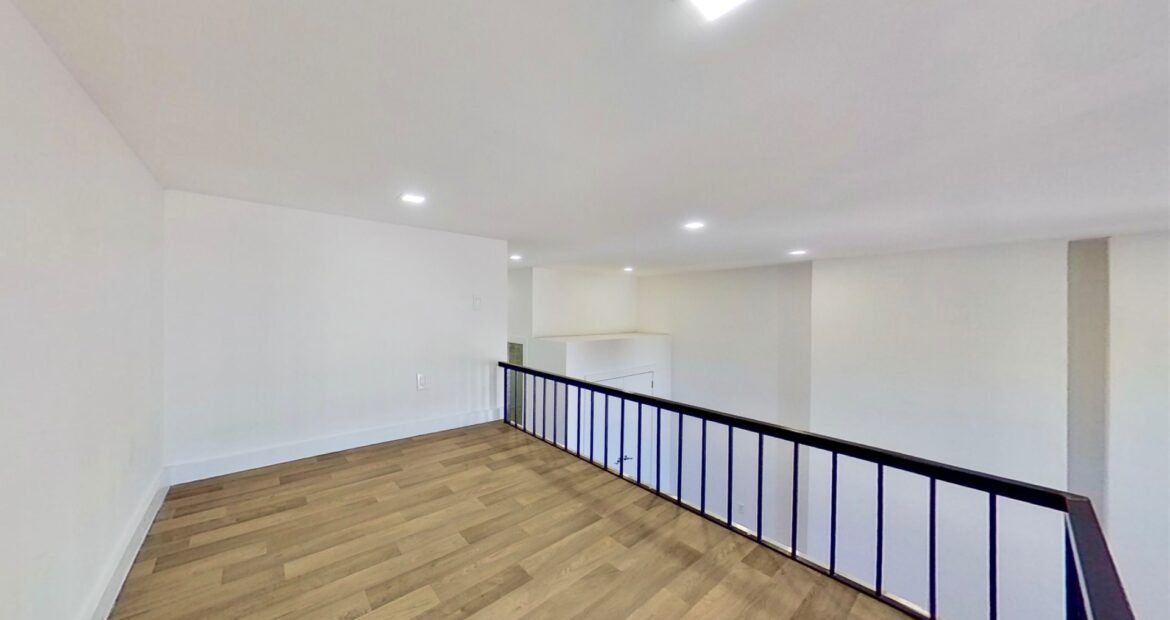 Two spacious bedrooms with hardwood floors, modern lighting, and large windows and sleeping lofts